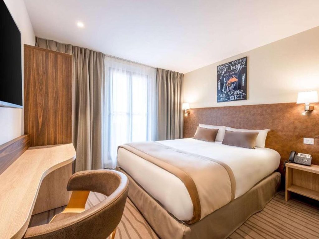 The rooms maintain the traditional French decoration style and are fully equipped, including a private bathroom and free Wi-Fi. The hotel’s public areas are warmly decorated and provide a comfortable resting space.